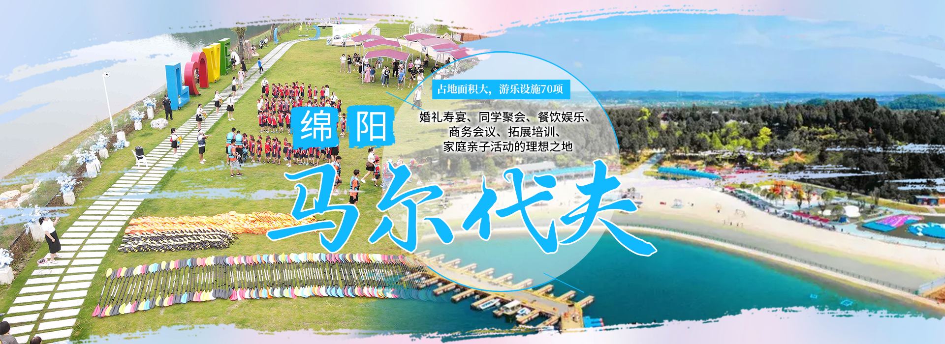 綿陽嘉成文化旅游有限公司是一家旅游開發公司,成立于2019年。 親水灣沙灘樂園項目由綿陽嘉成文化旅游有限公司開發運營,位于國家級水利風景區——綿陽市仙海水利風景區,距綿陽市區15公里,車程約半個小時,是依托沉抗水庫建設的仙海風景區重點旅游項目。進入仙海風景區上坡向左進入環湖路前行1000米。項目總占地220畝,其中核心沙灘樂園占地100畝,現建成沙灘休閑、淺灘嬉水、水上運動,親子蹦蹦云、網紅多人秋千、人力過山車、水幕秋千、團隊拓展等項目十余個,還開設有特色中餐、仙?;疱侓~,自助燒烤等飲食項目。 近觀青山綠水,遠眺碧波蕩漾,清晨朝霞映翠、傍晚水天一色。親水灣沙灘主題樂園有可容納200人的沙灘會議室和30人的小型會議室;棋牌室16間; 商務KTV;餐飲中心可同時容納300人用餐;篝火晚會場地等,是婚禮壽宴、同學聚會、餐飲娛樂、商務會議、拓展培訓、家庭親子活動的首選之地。